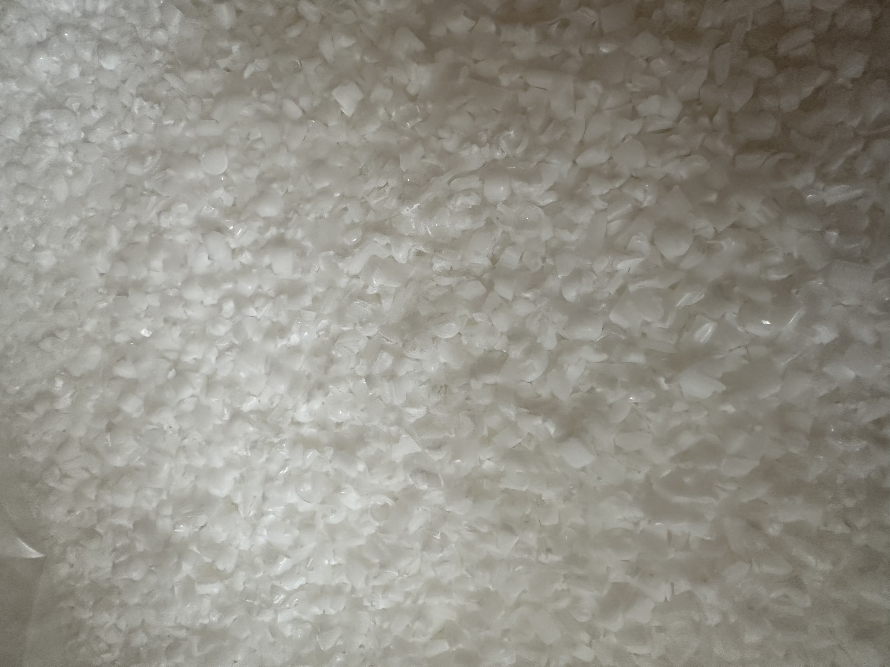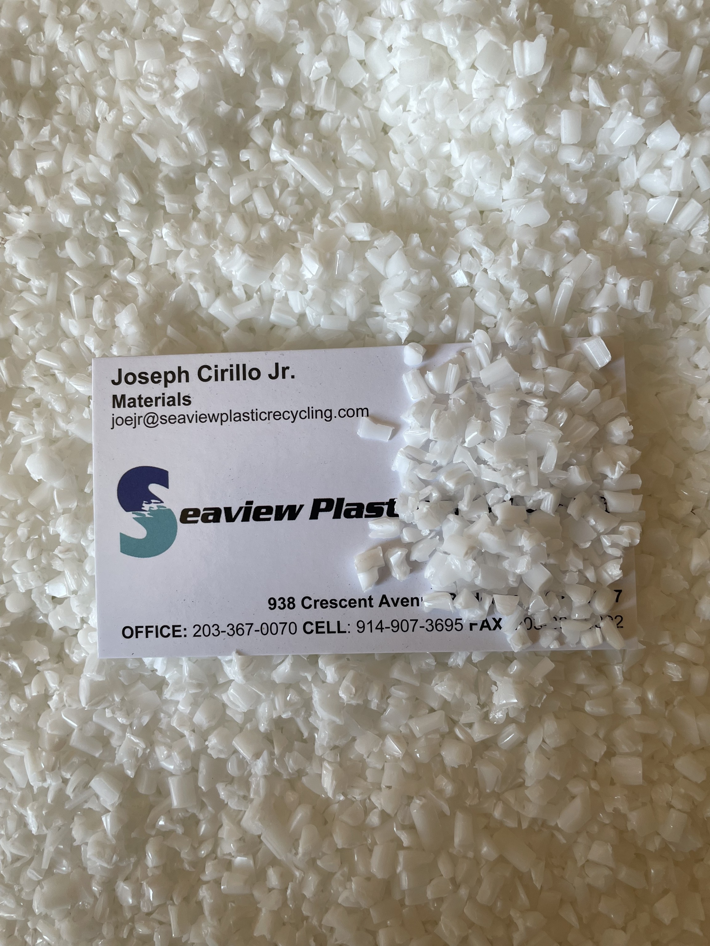 Acetal (POM) Regrind from Delrin 500p. Material is natural, first generation regrind with only one past heat cycle.