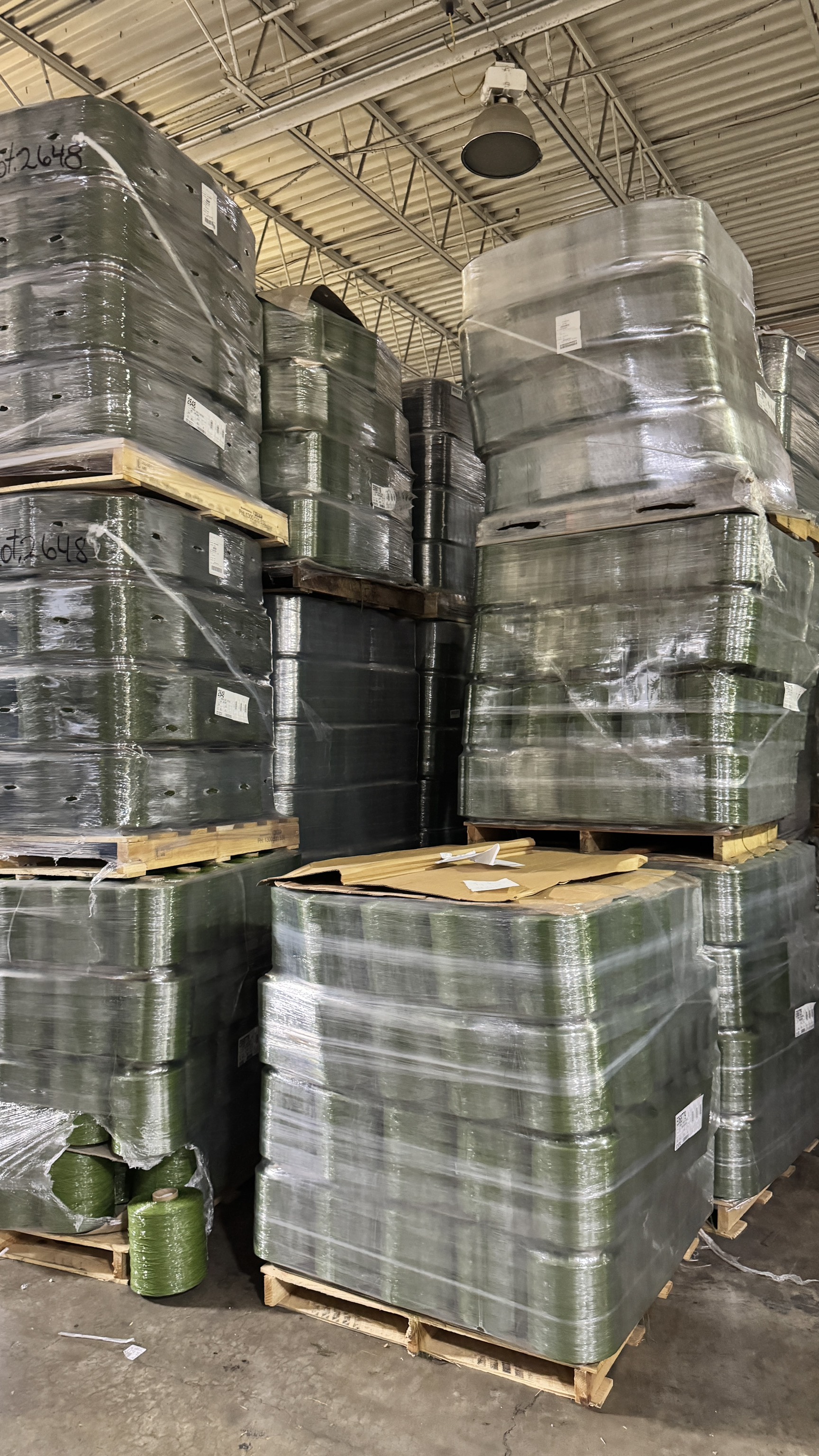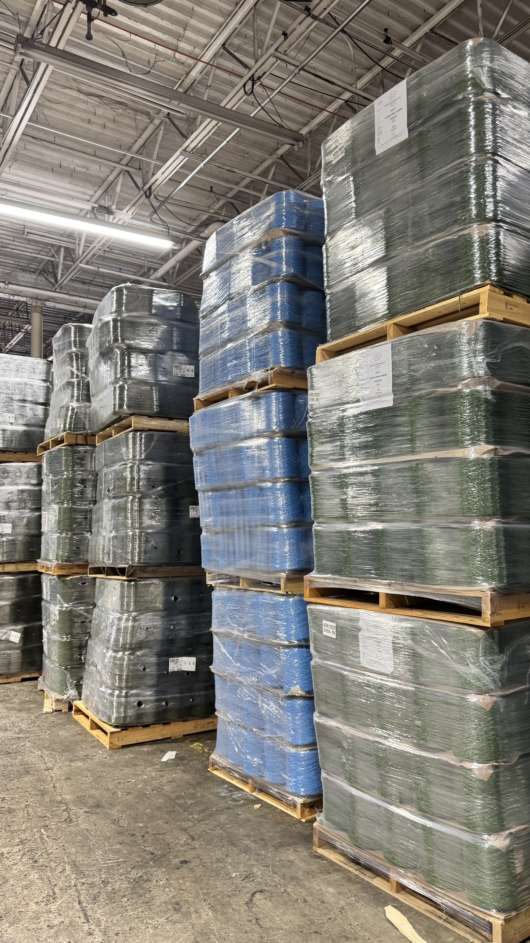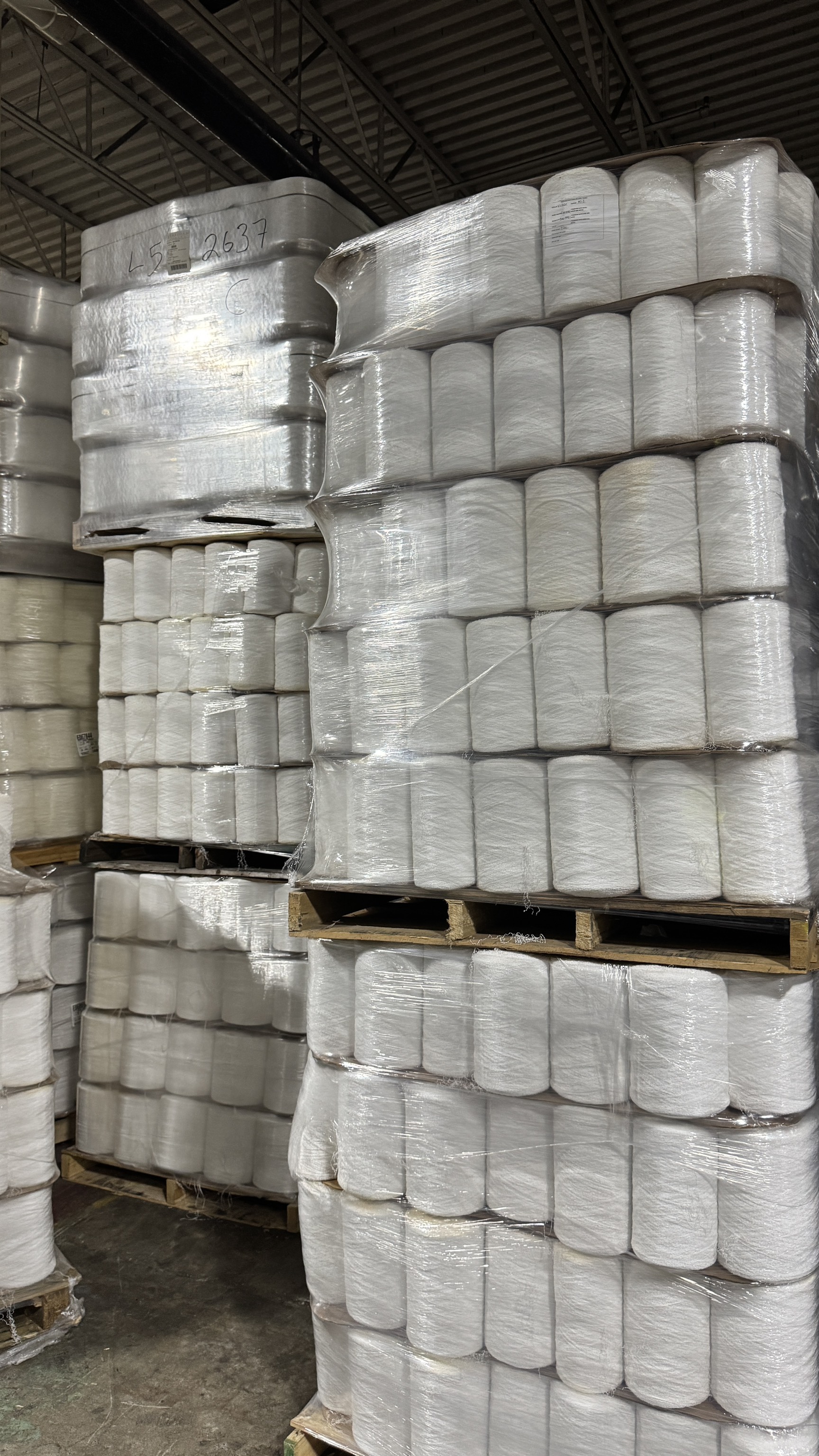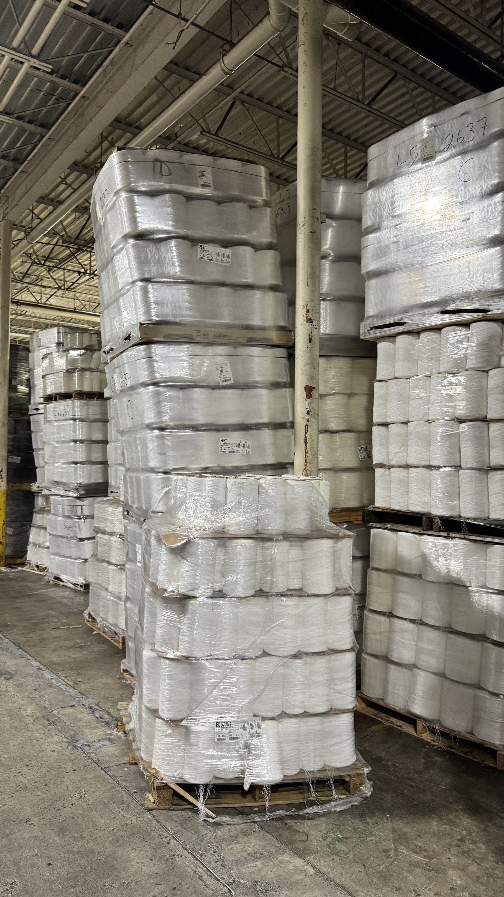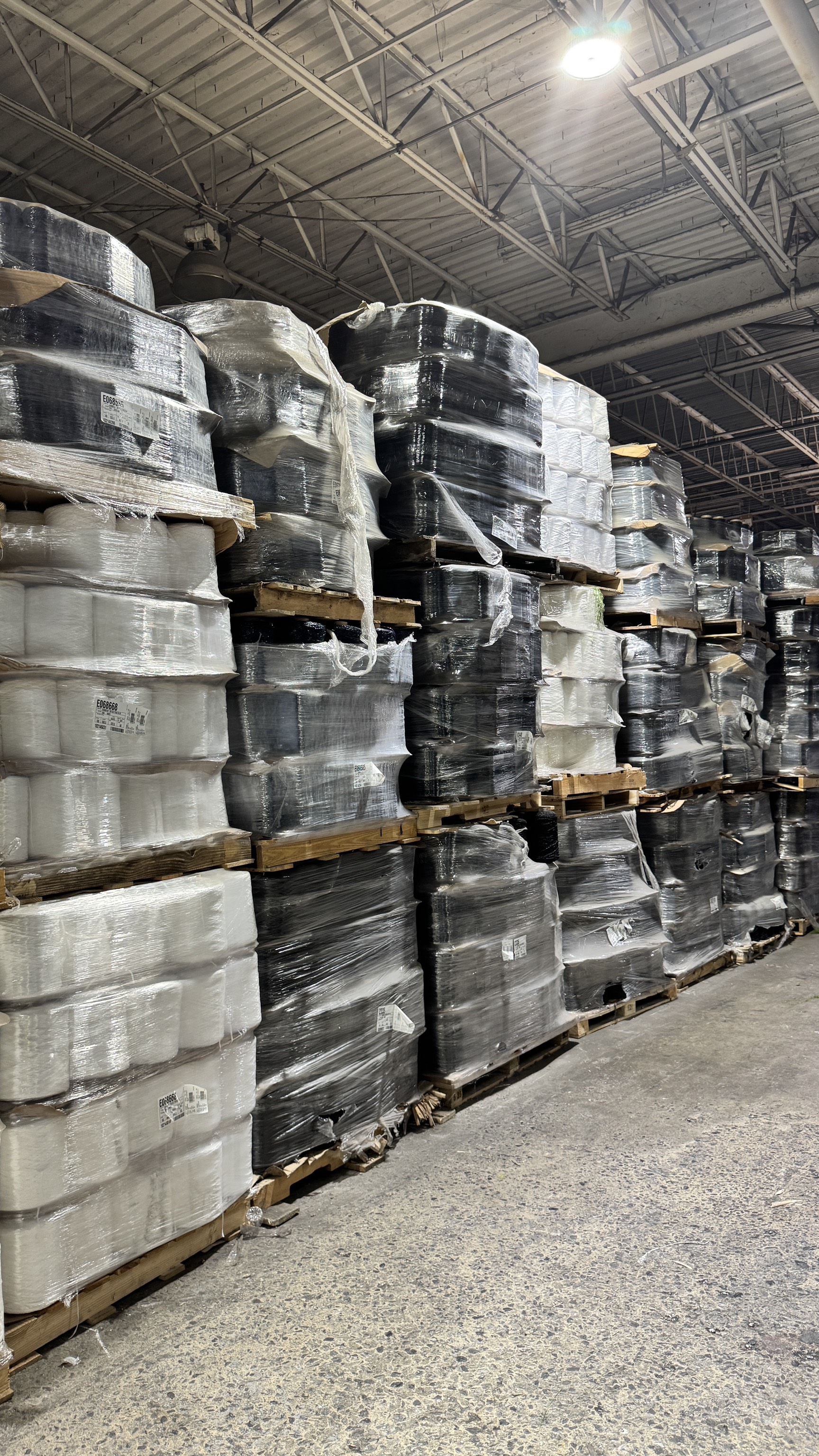 Nylon and Polyethylene Yarn. All is 1st quality big cones wrapped on pallets. All is separated by color and polymer. No mixture of polymers.