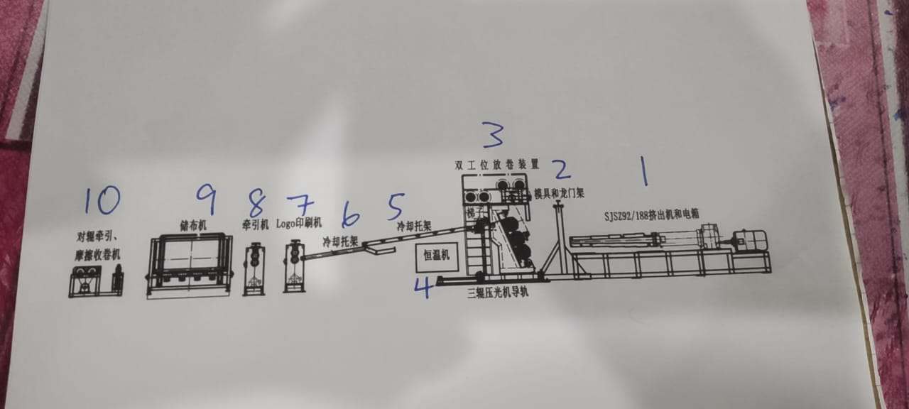 92/188 Three-roller extruder, PVC/PE flooring, sheet, water pipe, very new machine, large extrusion capacity, 5 years old